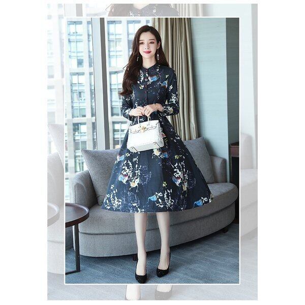ワンピース レディース シフォンワンピース 花柄 大きいサイズ 長袖 韓国 韓国ファッション コーデ おすすめ カジュアル きれいめ 大きいサイズ 人気 ゆったり 20代 30代 40代 50代