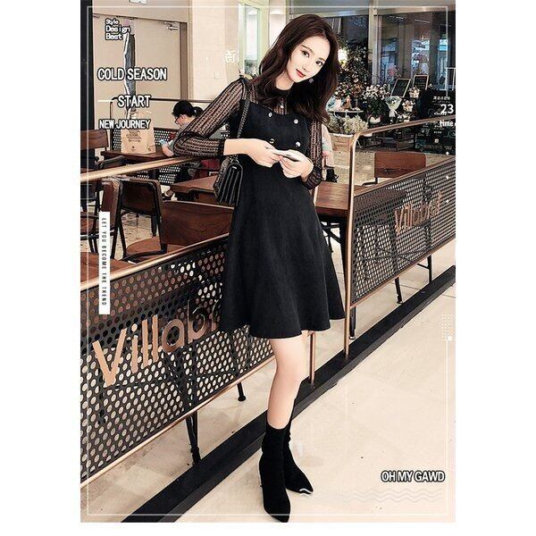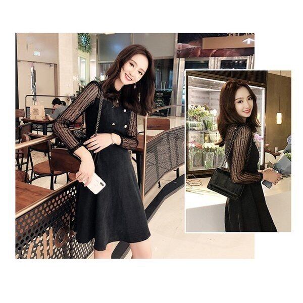 ワンピース レディース コ一デュロイ 長袖 レース切り替え 韓国 韓国ファッション コーデ おすすめ カジュアル きれいめ 大きいサイズ 人気 ゆったり 20代 30代 40代 50代