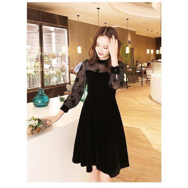 ワンピース レディース 長袖 パフスリーブ レース切り替え 春秋 韓国 韓国ファッション コーデ おすすめ カジュアル きれいめ 大きいサイズ 人気 ゆったり 20代 30代 40代 50代