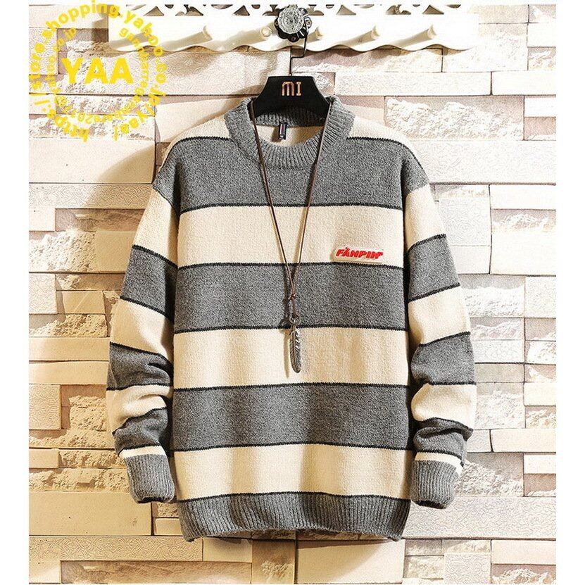 セーター クルーネック ボーダー メンズ 春秋冬 ニットセーター 大きいサイズ 韓国 韓国ファッション コーデ おすすめ カジュアル きれいめ 大きいサイズ 人気 ゆったり 20代 30代 40代 50代