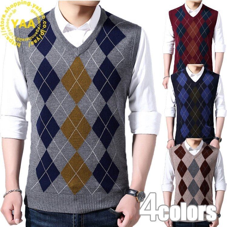 ニットベスト vネック ニット ベスト メンズ 無地 ビジネス 学生 4870