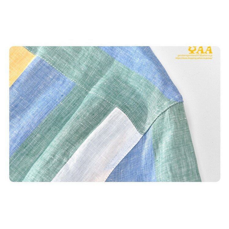 シャツ 半袖 バンドカラー ストライプ柄 ヘンリーネック リネン tシャツ プルオーバー 4882