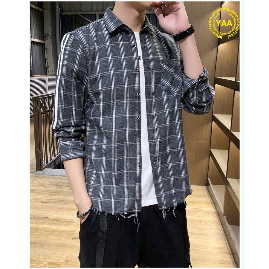 シャツ 長袖 チェックシャツ メンズ カジュアルシャツ サイドライン 韓国 韓国ファッション コーデ おすすめ カジュアル きれいめ 大きいサイズ 人気 ゆったり 20代 30代 40代 50代