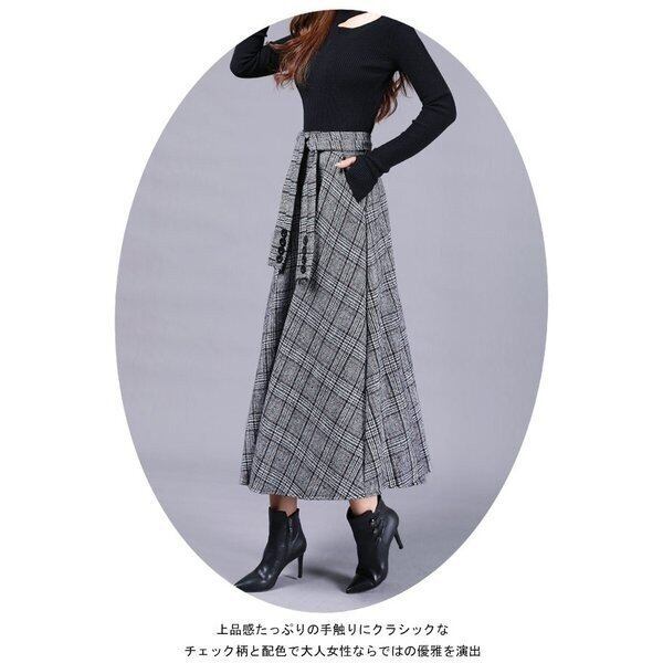 スカート チェック柄 ロングスカート 厚手 秋冬 レディース 5471