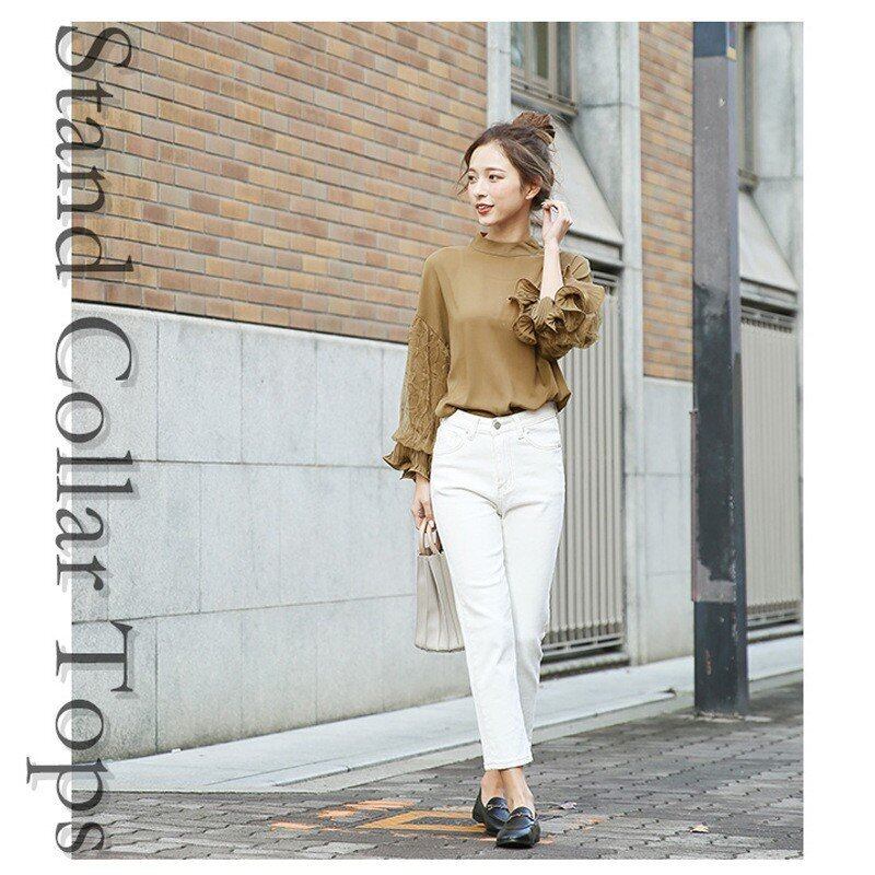 ブラウス レース レディース スタンドカラー フリル ボリューム袖 長袖 韓国 韓国ファッション コーデ おすすめ カジュアル きれいめ 大きいサイズ 人気 ゆったり 20代 30代 40代 50代