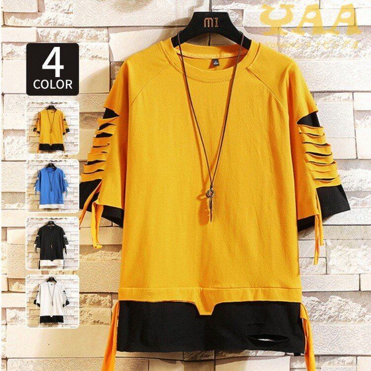 tシャツ 五分袖 カットソー 半袖tシャツ フェイクレイヤード 夏 切り替え 重ね着風 韓国 韓国ファッション コーデ おすすめ カジュアル きれいめ 大きいサイズ 人気 ゆったり 20代 30代 40代 50代