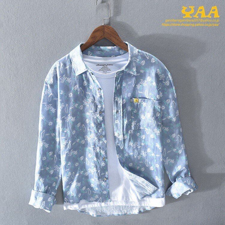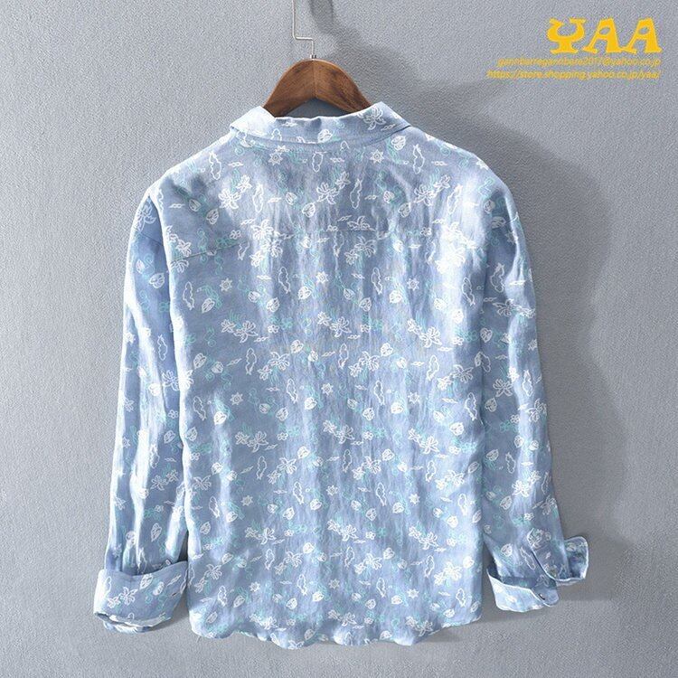 シャツ メンズ 長袖 リネン ボタニカル 総柄 花柄シャツ カジュアルシャツ 長袖シャツ 5238