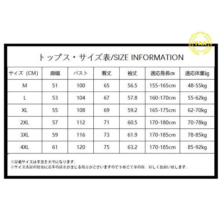4XL:肩幅61 バスト120 着丈75 袖丈63.2