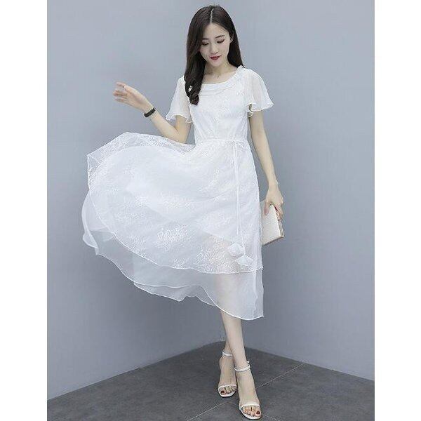 ワンピース レディース シフォンチュール 半袖 フレア袖 結婚式 二次会 パーティー 韓国ファッション コーデ おすすめ カジュアル きれいめ 大きいサイズ 人気 ゆったり 20代 30代 40代 50代