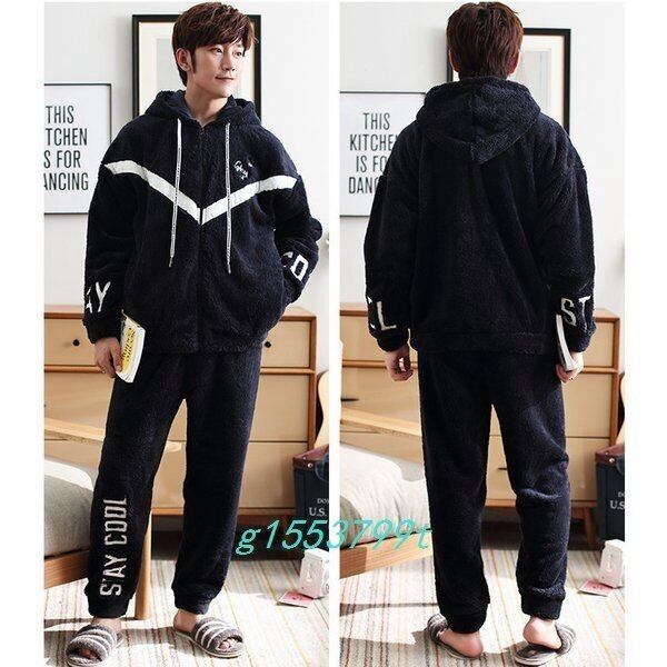 ルームウェア セットアプ パジャマ メンズ 裏起毛 長袖 厚手 ゆったり 韓国 ファッション コーデ おすすめ カジュアル きれいめ 大きいサイズ 人気 ゆったり 20代 30代 40代 50代