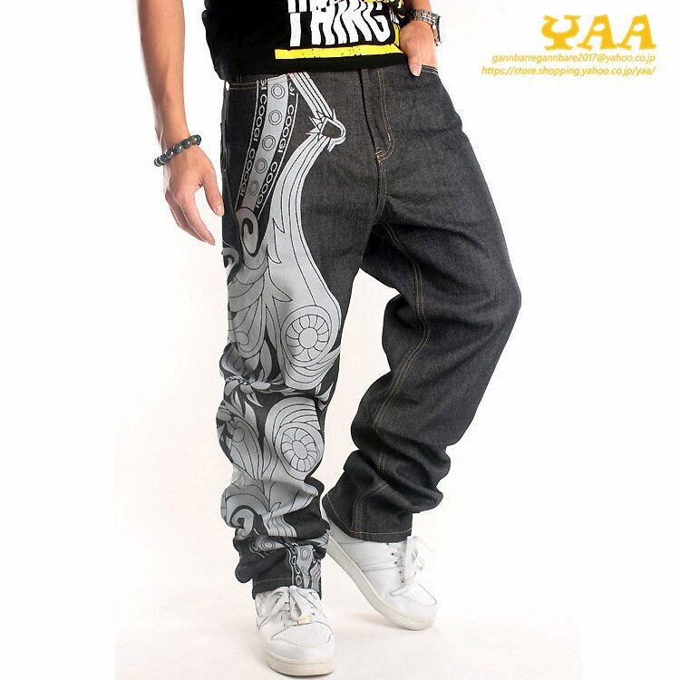 デニムパンツ ワイドパンツ バギーパンツ メンズ ジーンズ デニム 刺繍 大きいサイズ ストリート 5111