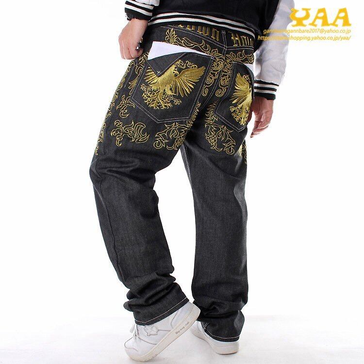 デニムパンツ ワイドパンツ バギーパンツ メンズ ジーンズ デニム 刺繍 大きいサイズ ストリート 5112