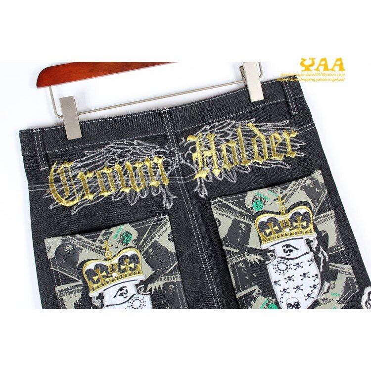 デニムパンツ ワイドパンツ バギーパンツ メンズ ジーンズ デニム 刺繍 大きいサイズ ストリート 5113