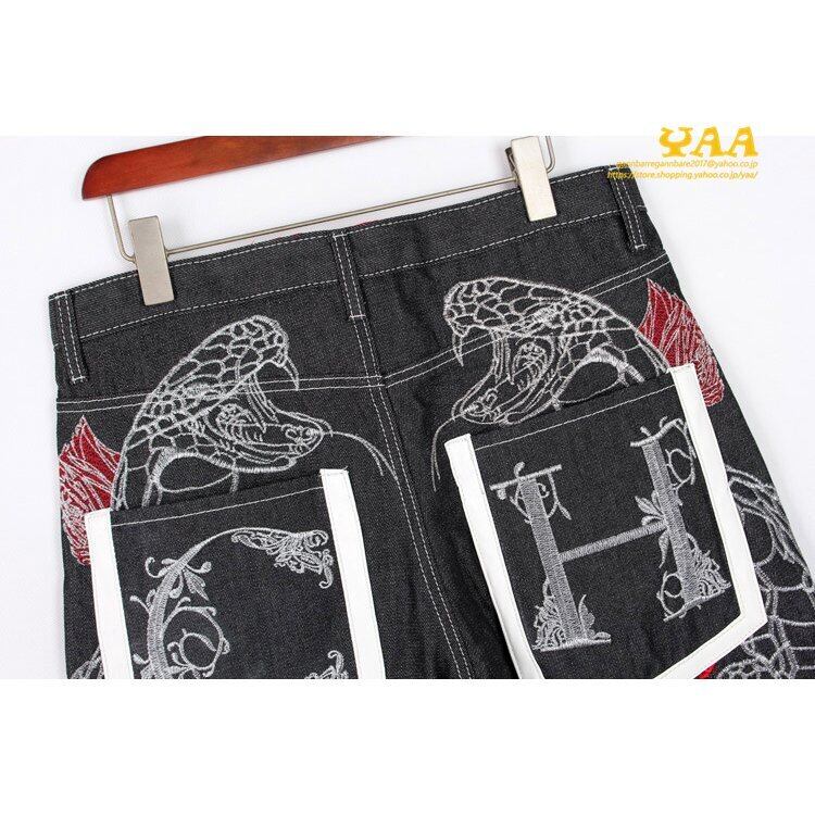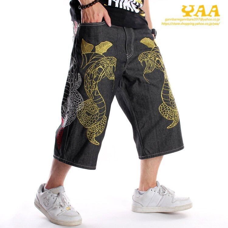 ハーフパンツ メンズ デニムパンツ ワイドパンツ 七分丈 刺繍 ストリート 大きいサイズ 5120
