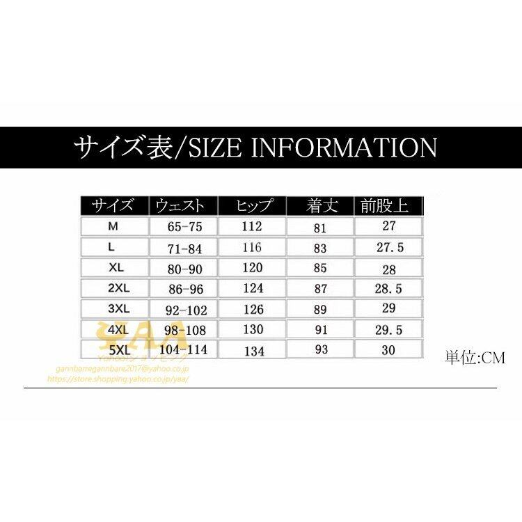 5XL:ウエスト104-114 ヒップ134 着丈93 前股上30