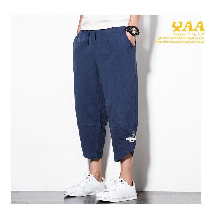 クロップドパンツ メンズ 刺繍 イージーパンツ ハーフパンツ 8分丈 大きいサイズ 5127