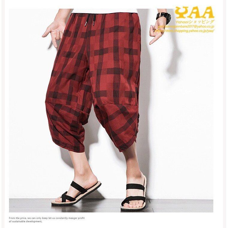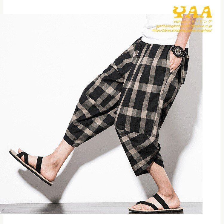 クロップドパンツ メンズ チェック柄 イージーパンツ ハーフパンツ 8分丈 大きいサイズ 5129