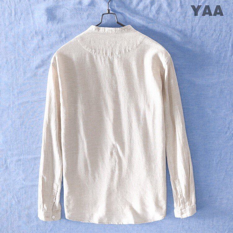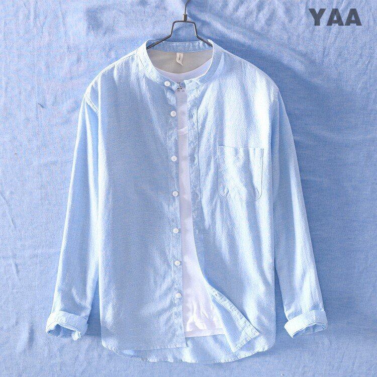 シャツ 長袖 長袖シャツ メンズ 綿麻 リネンシャツカジュアルシャツ スタンドカラー 5151
