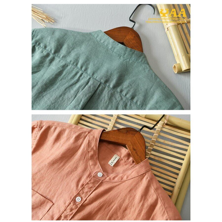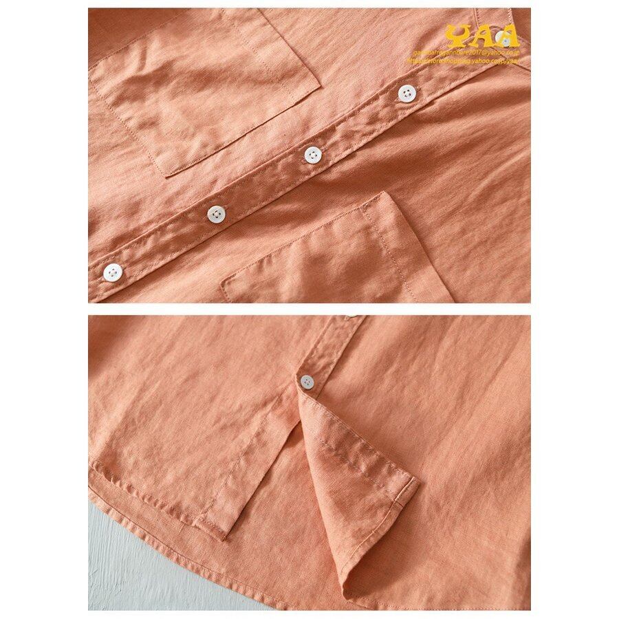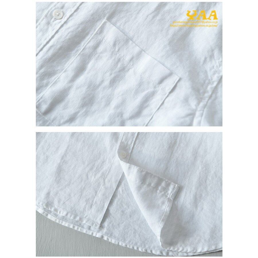 シャツ 半袖 半袖シャツ メンズ 麻 リネン カジュアルシャツ ノーカラー 5156