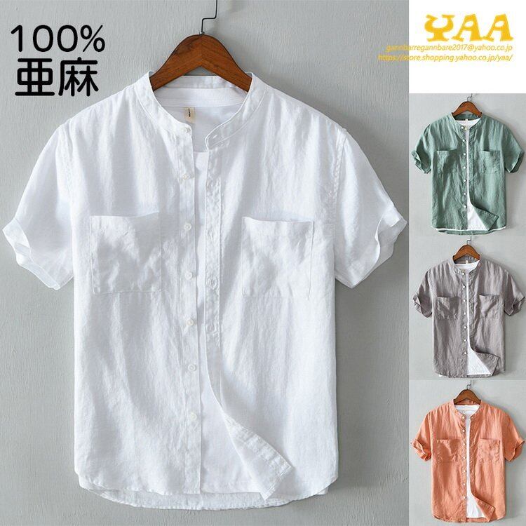 シャツ 半袖 半袖シャツ メンズ 麻 リネン カジュアルシャツ ノーカラー 韓国 ファッション コーデ おすすめ カジュアル きれいめ 大きいサイズ 人気 ゆったり 20代 30代 40代 50代