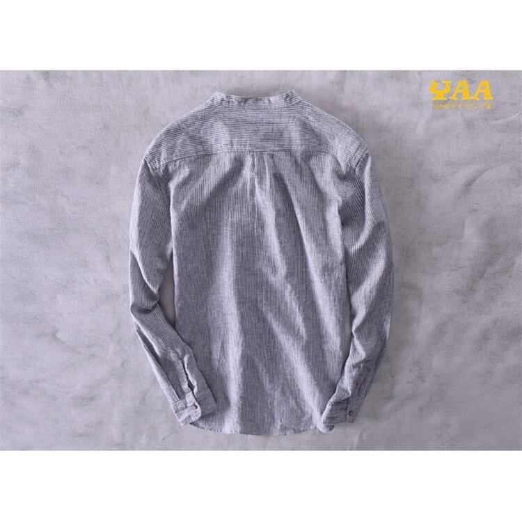 シャツ 長袖 メンズ スタンドカラー リネンシャツ カジュアルシャツ 長袖シャツ 4911