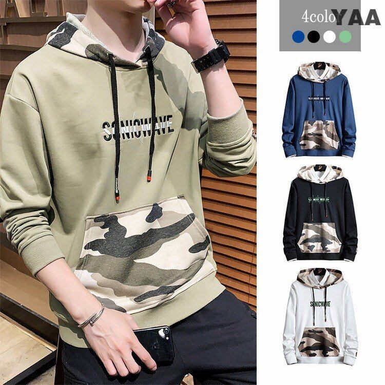 パーカー メンズ プルオーバー 迷彩 春秋 長袖 フード メンズパーカー 大きいサイズ 韓国ファッション コーデ おすすめ カジュアル きれいめ 大きいサイズ 人気 ゆったり 20代 30代 40代 50代