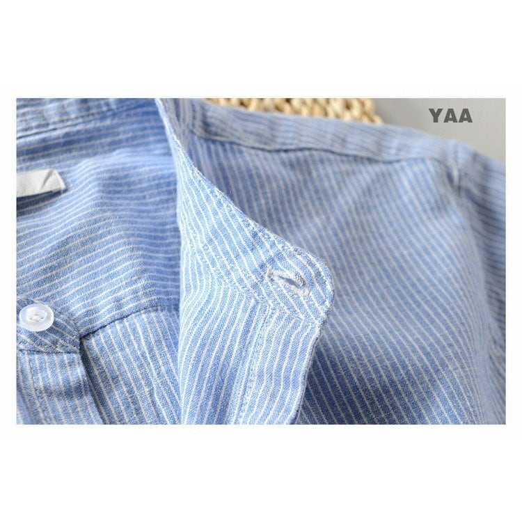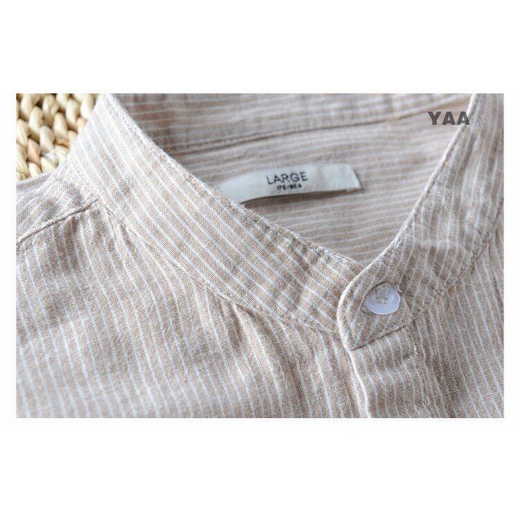 シャツ 長袖 メンズ ノーカラー カジュアルシャツ 綿麻 ストライプ リネンシャツ 韓国ファッション コーデ おすすめ カジュアル きれいめ 大きいサイズ 人気 ゆったり 20代 30代 40代 50代