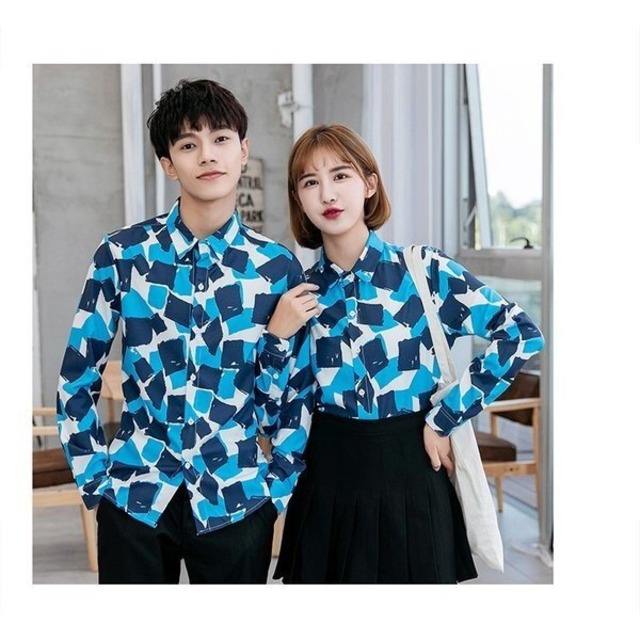 シャツ 長袖 メンズ レディース 2color ペアルック 長袖シャツ プリントシャツ ユニセックス 男女兼用 5613