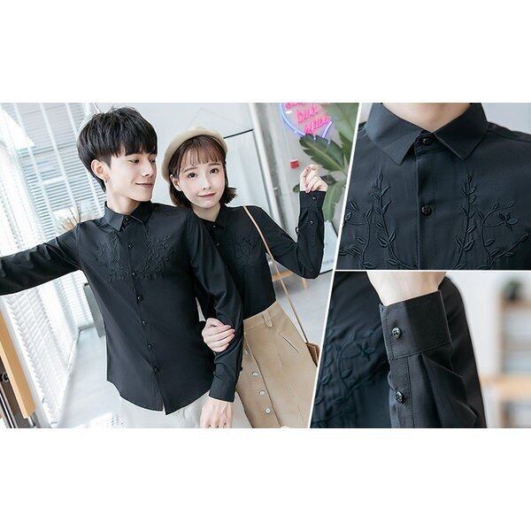 シャツ 長袖 メンズ レディース 2color ペアルック 長袖シャツ 刺繍 ユニセックス 男女兼用 5637