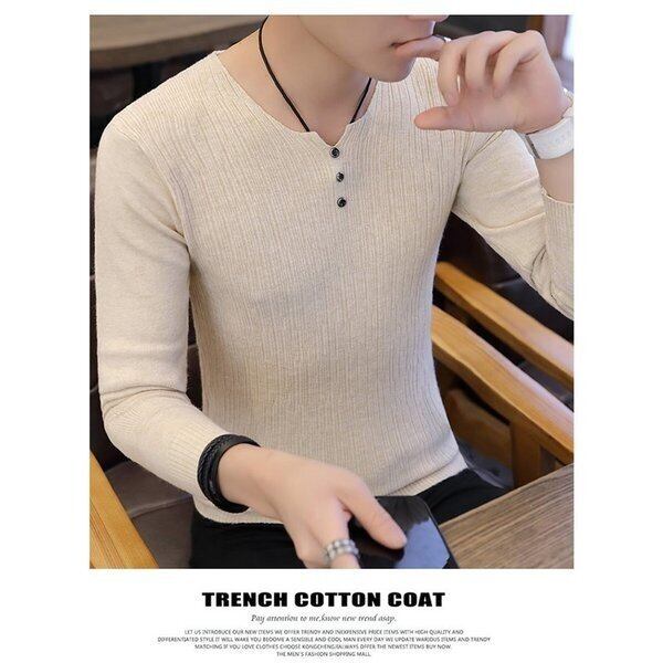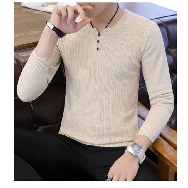 セーター メンズ 6color ニット プルオーバー ヘンリーネック 薄手 ニットソー 長袖 大きいサイズ 5677