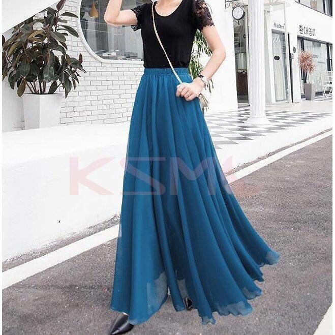 シフォンスカート マキシスカート フレアスカート 16色 マキシ丈 無地 ウエストゴム ロングスカート 刺繍 韓国 ファッション コーデ おすすめ カジュアル きれいめ 大きいサイズ 人気 ゆったり 20代 30代 40代 50代