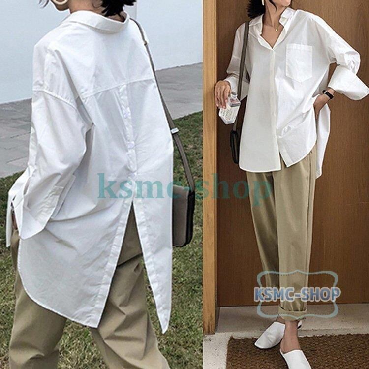 ブラウス シャツ レディース きれいめ 白シャツ 長袖 スリットブラウス ゆったり 韓国風 韓国 ファッション コーデ おすすめ カジュアル きれいめ 大きいサイズ 人気 ゆったり 20代 30代 40代 50代