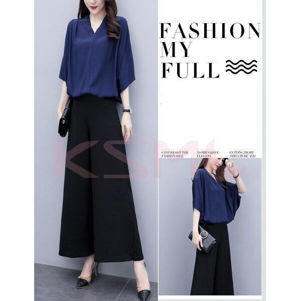 セットアップ レディース 上下セット ブラウス ガウチョパンツ シフォン 大きいサイズ 韓国風 5732