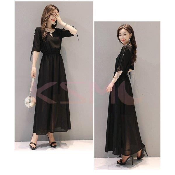ワンピース ロングワンピース 3色 レディース マキシ丈 チュニック Aライン スリット ウエストゴム 5742