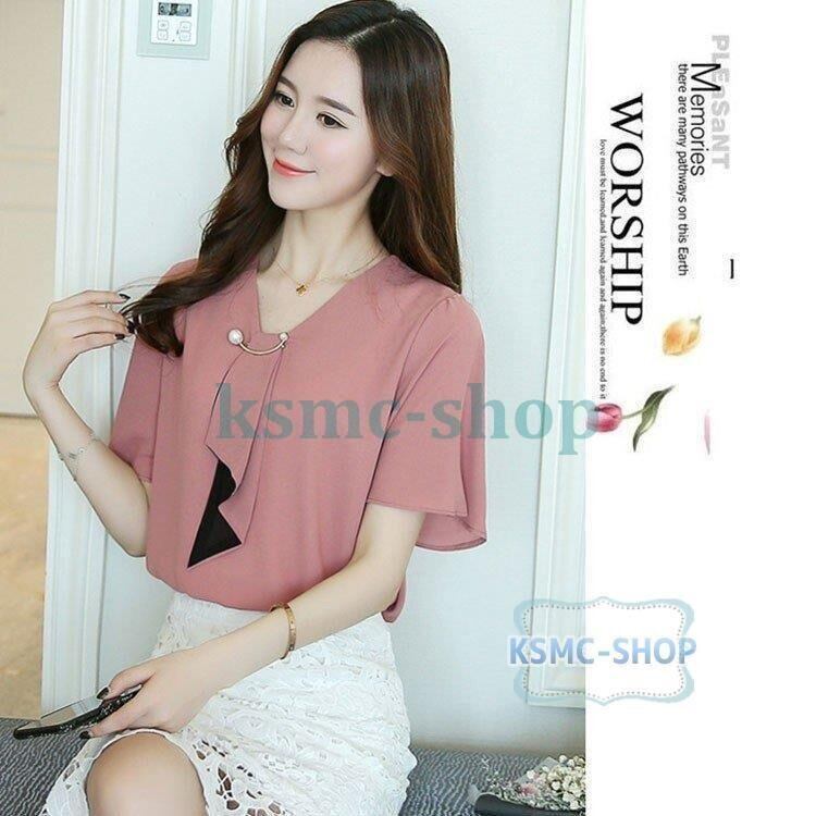 ブラウス シャツ 4色 レディース シフォン 半袖 リボン オフィス 韓国風 韓国 ファッション コーデ おすすめ カジュアル きれいめ 大きいサイズ 人気 ゆったり 20代 30代 40代 50代
