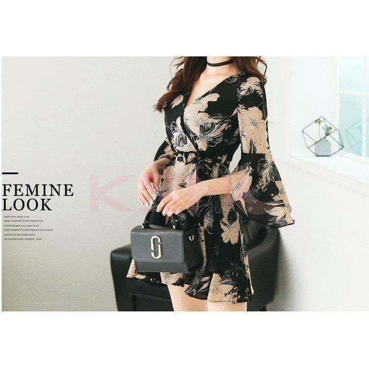 ワンピース レディース 七分袖 ミニ フレア 花柄 シフォンワンピース 韓国風 5750
