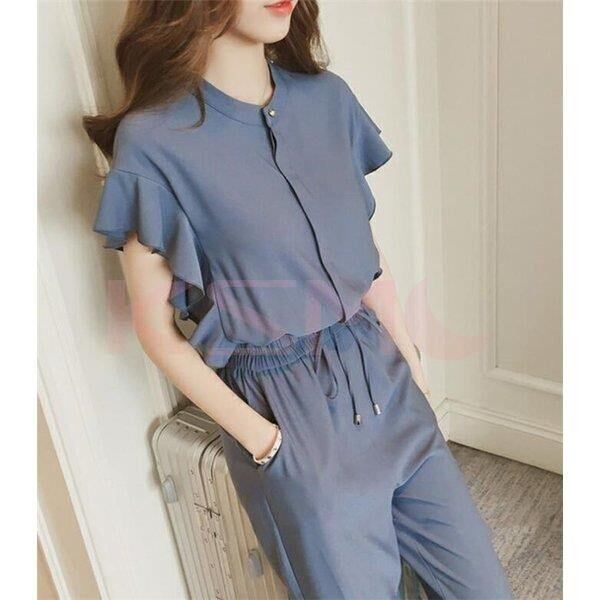 セットアップ レディース フリル シャツ パンツ キレイめ 韓国風 韓国 ファッション コーデ おすすめ カジュアル きれいめ 大きいサイズ 人気 ゆったり 20代 30代 40代 50代