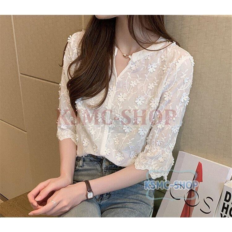 ブラウス レディース 七分袖 レースシャツ オフィス 春夏 韓国風 レースシャツ 無地 大きいサイズ 韓国 ファッション コーデ おすすめ カジュアル きれいめ 大きいサイズ 人気 ゆったり 20代 30代 40代 50代