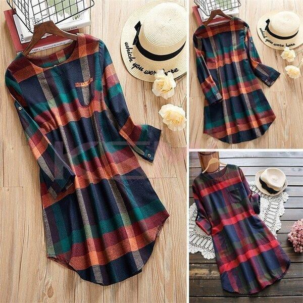 ★特徴:春秋におすすめのシャツワンピース。かわいいチェック柄で生地は少し厚めです。ゆったりめのシルエットで体型カバー効果も。