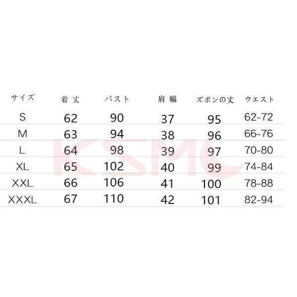 XXXL:着丈67 バスト110 肩幅42 ズボン丈101 ウエスト82-94