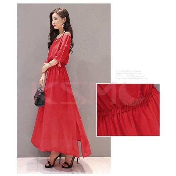★特徴:結婚式や二次会、パーティーなどにおすすめのマキシワンピース。韓国風のデザインできれいめコーデや大人カジュアルコーデにも♪