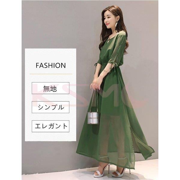 ワンピース ロングワンピース マキシ丈 Aライン 無地 ウエストゴム フレアワンピース シースルー 韓国 ファッション コーデ おすすめ カジュアル きれいめ 大きいサイズ 人気 ゆったり 20代 30代 40代 50代