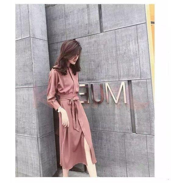 ワンピース シャツワンピース レデイース 膝下丈 スリット 5866