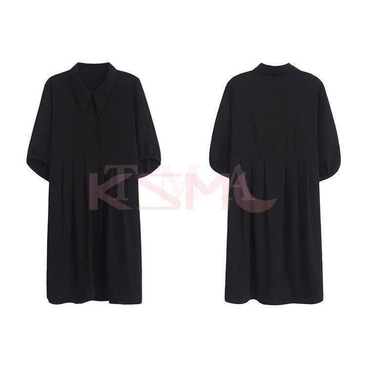 ワンピース シャツワンピース 2タイプ レディース マキシ丈 ミモレ丈 五分袖 パフスリーブ 黒 大きいサイズ 韓国 ファッション コーデ おすすめ カジュアル きれいめ 大きいサイズ 人気 ゆったり 20代 30代 40代 50代