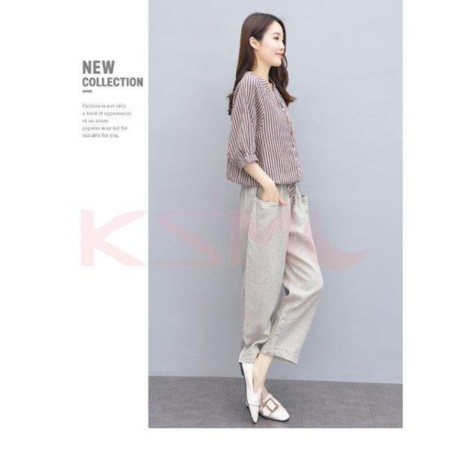 セットアップ レディース カジュアル 上下セット 綿麻 九分丈パンツ 大きいサイズ 5874