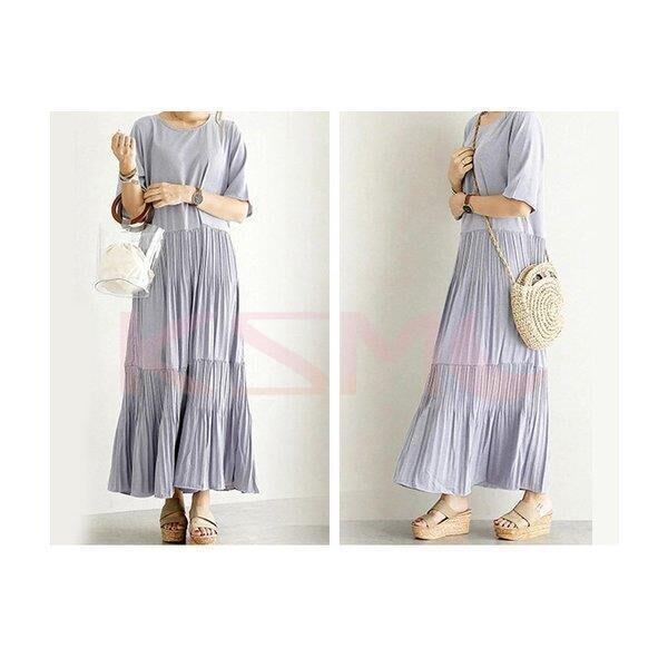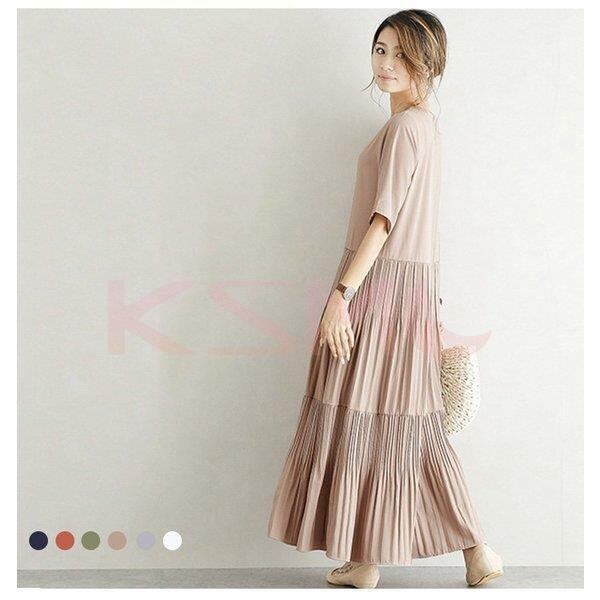 ワンピース レディース マキシワンピース 半袖 無地 プリーツ 夏 きれいめ 韓国風 韓国 ファッション コーデ おすすめ カジュアル きれいめ 大きいサイズ 人気 ゆったり 20代 30代 40代 50代