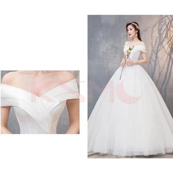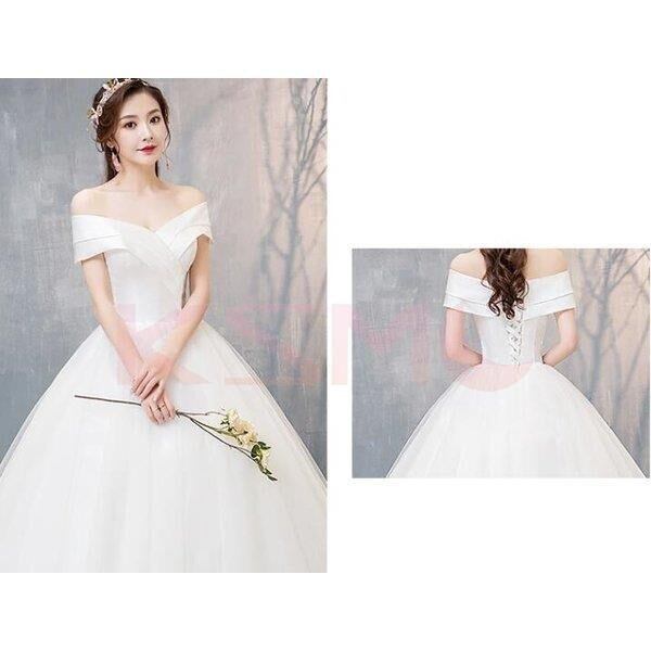 ウェディングドレス ドレス ロングドレス 白ドレス 編み上げ オフショルダー 結婚式 パーティー 5885