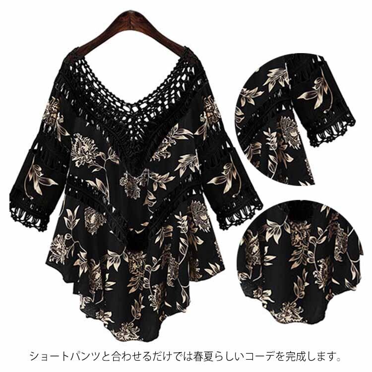 チュニック ワンピース レディース チュニックワンピース vネック 花柄 大きサイズ 五分袖 レース 韓国 ファッション コーデ おすすめ カジュアル きれいめ 大きいサイズ 人気 ゆったり 20代 30代 40代 50代