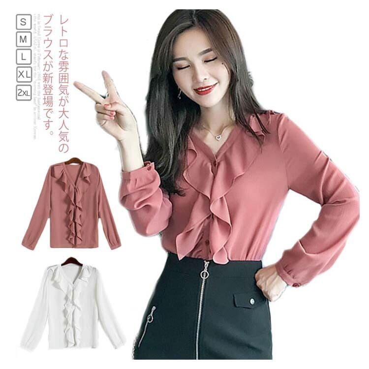 ブラウス レディース シフォンブラウス フリル 長袖 シャツ レディース 韓国 ファッション コーデ おすすめ カジュアル きれいめ 大きいサイズ 人気 ゆったり 20代 30代 40代 50代