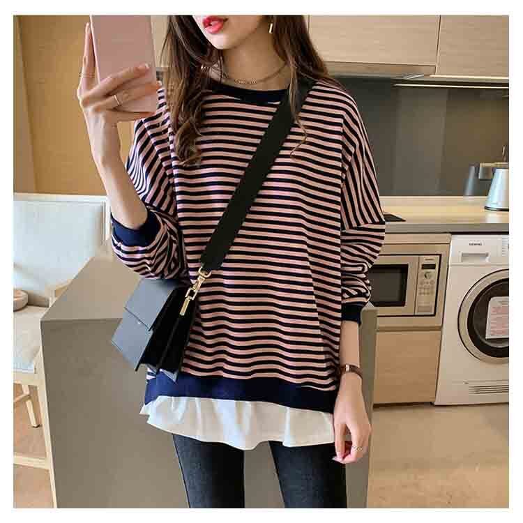 tシャツ 長袖 プルオーバー レディース ボーダー カットソー ゆったり 韓国 ファッション コーデ おすすめ カジュアル きれいめ 大きいサイズ 人気 ゆったり 20代 30代 40代 50代